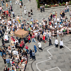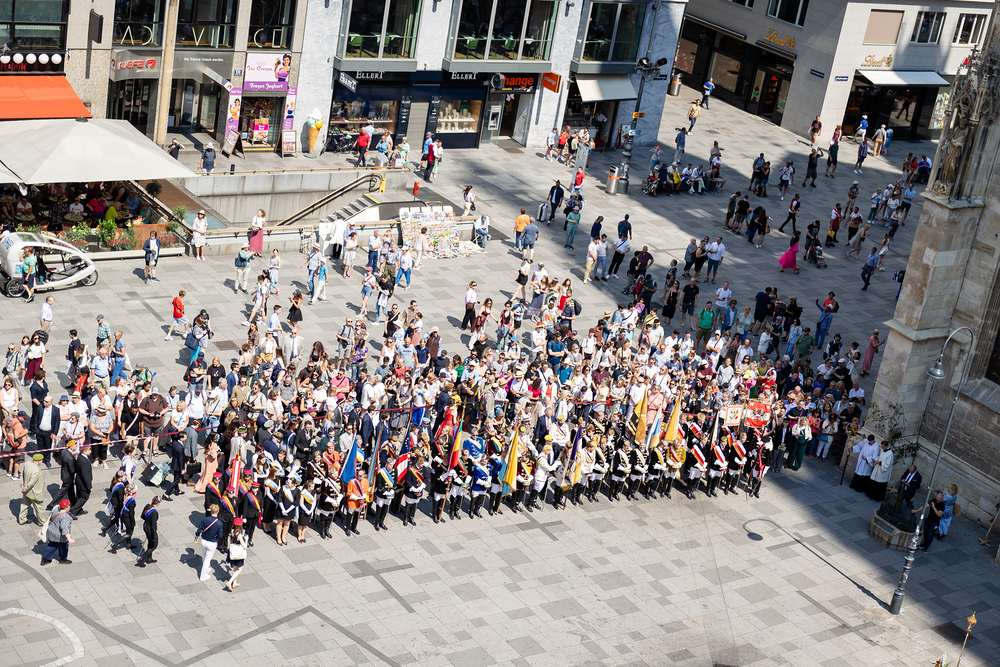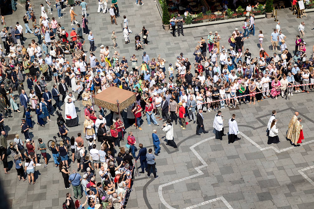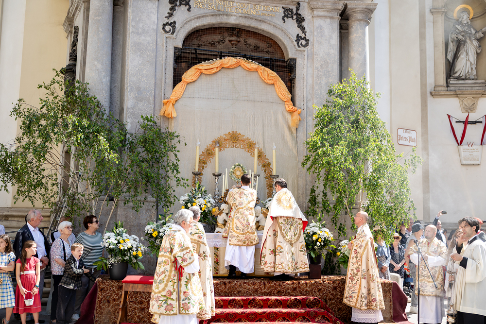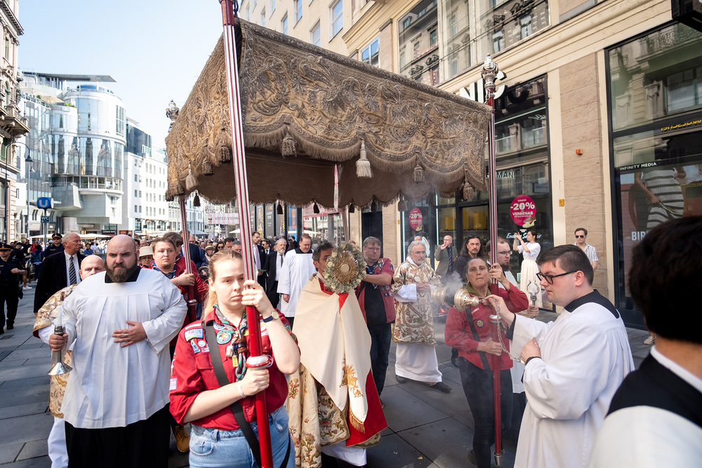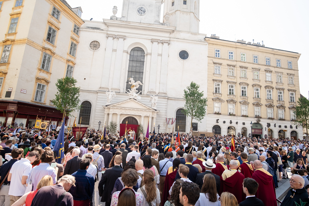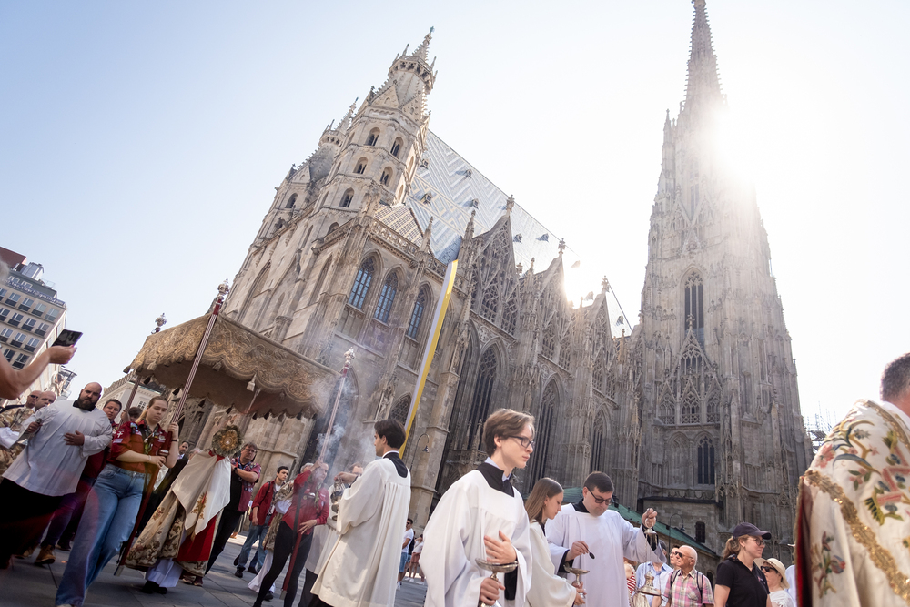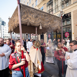 Josef Grünwidl betonte beim Stadtumzug anlässlich Fronleichnam die untrennbare Verbindung zwischen dem religiösen Feiertag und der christlichen Verantwortung, Gottes Schöpfung zu bewahren und eine „ökologische Umkehr“ angesichts der Klimakrise einzuleiten. Er dankte allen, die durch nachhaltiges Handeln und politischen Einsatz dazu beitragen, notwendige Maßnahmen zu ergreifen, um die dramatischen Folgen des Klimawandels abzuwenden. Die Fronleichnamsprozession, die vom Stephansdom ausging und Stationen am Michaelerplatz sowie am Graben bei der Peterskirche umfasste, zog erneut zahlreiche Gläubige und kirchliche Gruppierungen an. Auch politische Vertreter waren anwesend. Wir waren mit der Kamera dabei.