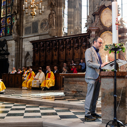 Im Vorfeld des Gottesdienstes bestieg Maturant Felix, der Gewinner des Preisausschreibens, mit Dompfarrer Toni Faber den 137 Meter hohen Südturm des Stephansdoms – ein Symbol für die Matura, die letzten Meter der Schulzeit. Wir haben die beiden mit der Kamera begleitet.